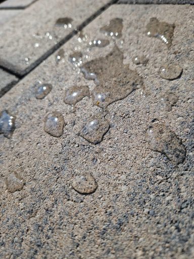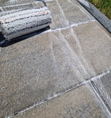 1. Grundreinigung: Der Untergrund wird abgesaugt und mit bis zu 100° heißem Wasser Hochdruck gereinigt um Algen, Flechten und Moos umweltschonend zu entfernen.